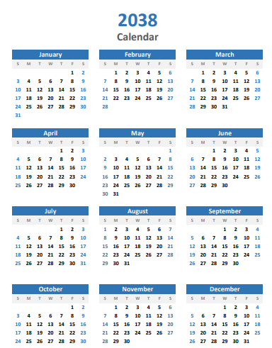 2038 Calendar Overview